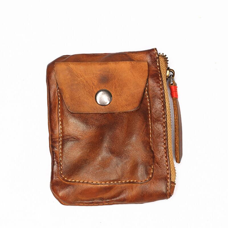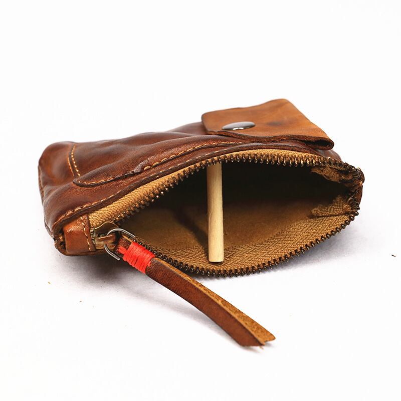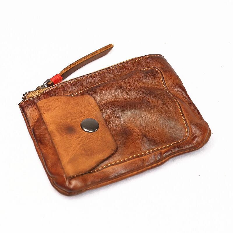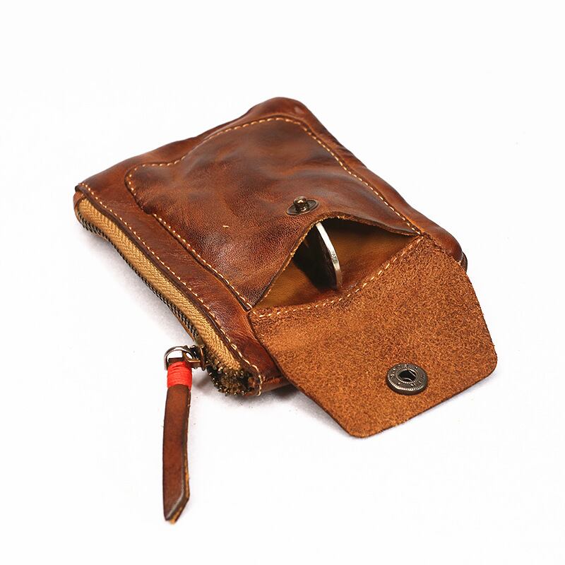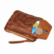 牛本革 小銭入れ 外側にポケット付き お札は折りたたんで収納可能です。
